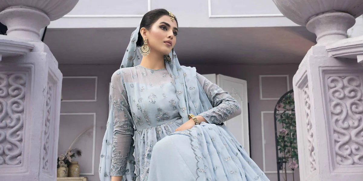 Command attention with our most opulent creation a 3-piece suit featuring fully heavy schifflie embroidery throughout, a dramatic back with embroidered bunches, and a breathtaking organza dupatta adorned with cutwork,...